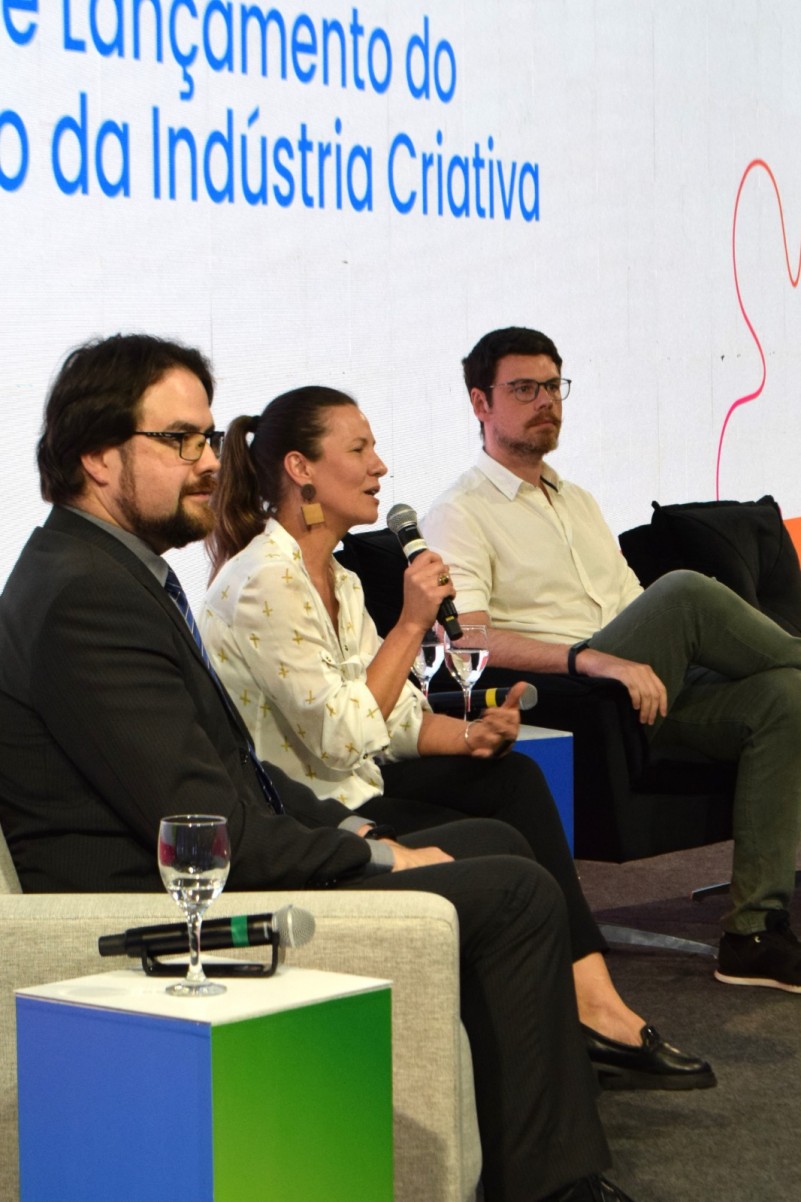 Na sequência, o painel “Políticas para Criar: Governança e Futuro para a Indústria Criativa” teve a participação do secretário da Cultura, Eduardo Loureiro, do presidente da Invest RS, Rafael Prikladnicki, do diretor da Agência Nacional de Cinema (Ancine), Paulo Alcoforado e do diretor do Sistema FIERGS, Diogo Bier, com mediação da vice-coordenadora do Comic, Aleteia Selonk.